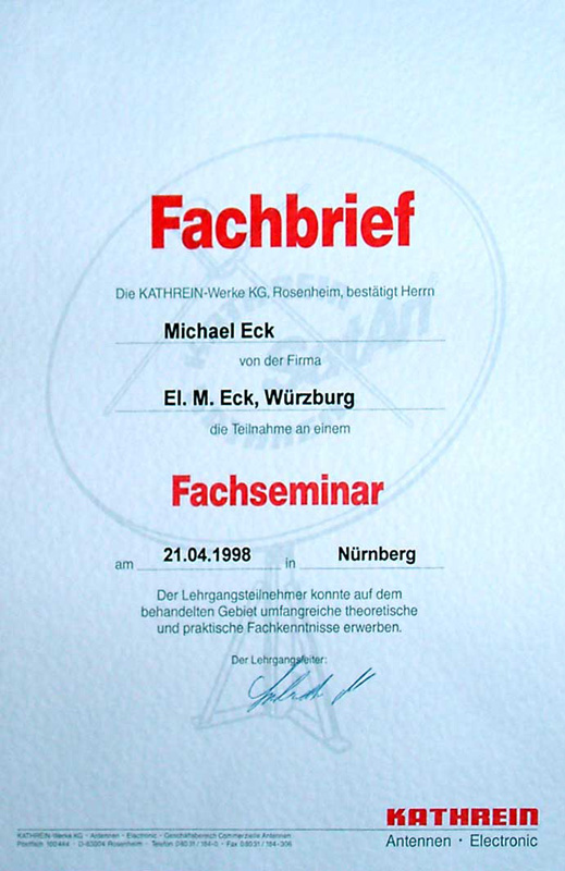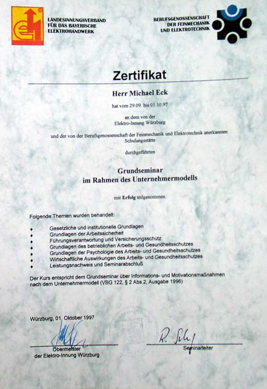 Seit 1997 führt das Team um Inhaber Elektromeister Michael Eck alle elektrotechnischen Arbeiten motiviert, kompetent, schnell und zuverlässig